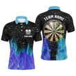 3D Blaue und Lila Feuer Dartscheibe Herren Darts Polo Shirt | Personalisiertes Dartshirt für Team | Hochwertiges Dart Trikot T1212
