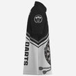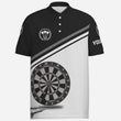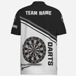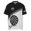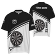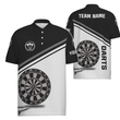 Schwarzes und weißes Herren Darts Polo Shirt mit individuellem Namen, maßgeschneiderte Darts Shirts für Männer Dart Trikot R787