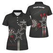 Damen Dart-Poloshirt Personalisiert - Schwarz-Rot-Weiße Sterne Grunge Design H3323