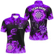 Feuerflamme Dartscheibe Individuelle Totenkopf Dart-Shirts für Herren, Gruselige Skelett Dart-Trikots | Lila T2905