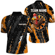 Lustiges Herren-Dartshirt in Orange und Schwarz mit Truthahn T2758