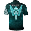 Individuell Dartshirt Wikinger Polo Shirt - Zyan Speer des Gottes Odin - Gungnir und zwei Zyan Raben VK6132