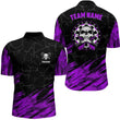 Individuelles 3D-All-Over-Print Totenkopf Darts Polo Shirt Lila Schwarz Dart Trikots für Herren F916 - lila