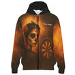 Personalisiertes Dart-Hoodie mit Reißverschluss Tag der Toten Zuckerschädel Darts Braun-Orange K7534