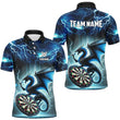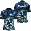 Herren Polo- und 1/4 Zip-Shirt mit Blitz, Drache und Thunder-Design in Blau - T2476