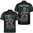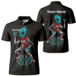 Herren Polo-Shirt Personalisiert Schwarz Alien Darts Motiv Petrol Rot G2888