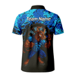 Personalisiertes Darts Poloshirt für Herren – Blau-Schwarz Splatter-Design Q5112