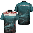 Personalisiertes Dart-Polohemd Herren – Weißer Hai Design, Petrol-Schwarz, mit Wunsch-Teamname T7018