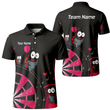 Personalisiertes Herren Dart Poloshirt Marienkäfer Motiv Schwarz Pink E3635