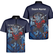 Personalisiertes Darts-Poloshirt für Herren – Frecher Blauer Teufel Motiv – Marineblau Rot S4696