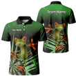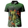 Personalisiertes Herren Poloshirt Rotaugenlaubfrosch Darts Motiv Grün-Schwarz I4840