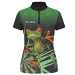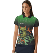 Personalisiertes Damen Dart-Poloshirt Rotaugenlaubfrosch Motiv Grün Schwarz I4840