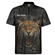 Personalisiertes Herren Dart Poloshirt Schwarz – Wildes Leoparden-Design U4010