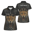 Personalisiertes Damen Dart Poloshirt – Schwarzer Leoparden-Print U4010