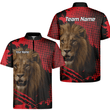Personalisiertes Dart Poloshirt für Herren | Brüllender Löwe Grunge-Design | Rot-Schwarz V1720