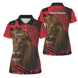 Personalisiertes Damen Dart Poloshirt – Brüllender Löwe Grunge Rot Schwarz V1720