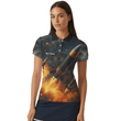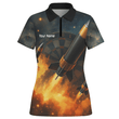 Personalisiertes Damen Jersey Polo-Shirt mit Weltraumraketen- und Flammen-Design Q1206