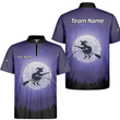 Personalisiertes Dart Polohemd für Herren | Hexenflug Mond Design | Lila Schwarz J5877