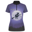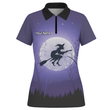 Personalisiertes Damen Darts Poloshirt – Hexen- und Mond-Motiv in Lila Schwarz J5877