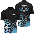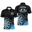 Personalisierte Darts Wings Schwarzes Blau Herren Polo Shirt | Maßgeschneidertes Herren Darts Shirt | Dart Trikots L1242