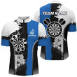 Personalisierte Schwarze Blau Grunge Stil Dart Herren Viertel-Zip Hemden - Maßgeschneiderte Darts Team Trikots T1216