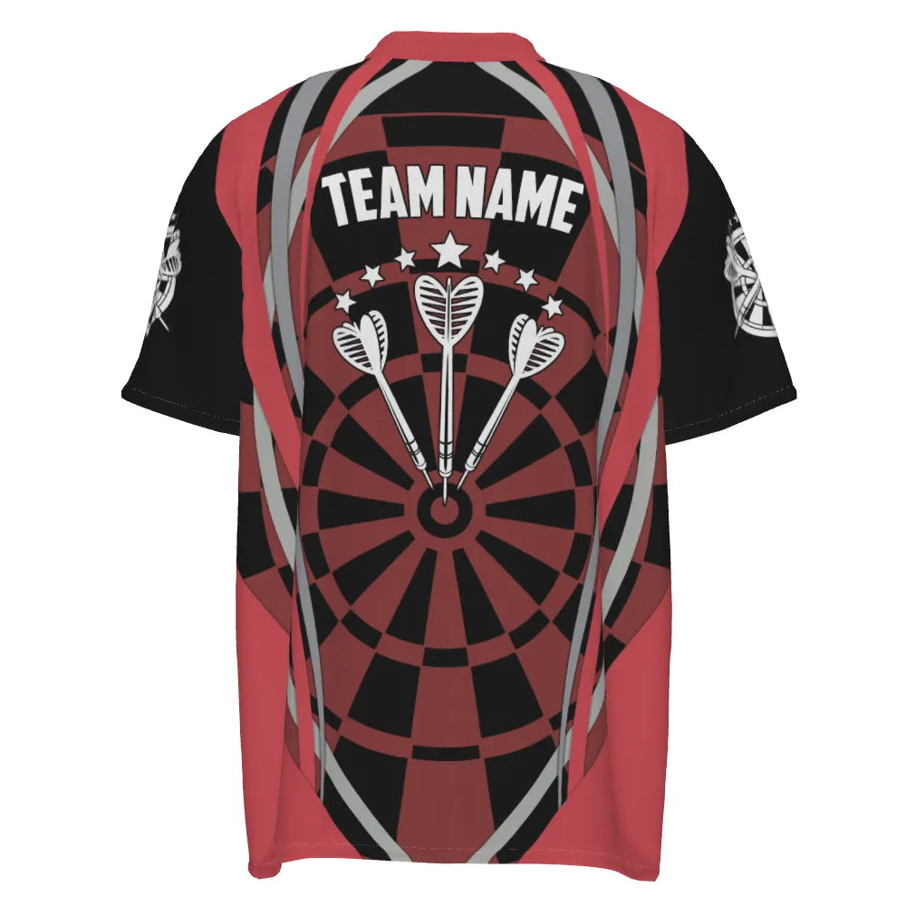 Personalisiertes Dartboard Herren Polo Shirt in Rot und Schwarz, cooles Darts Shirt für Männer, Darts Trikot F913
