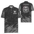 Personalisiertes Herren Polo-Shirt mit Totenkopf-Motiv, grau-schwarze Dart-Trikots für Männer F917