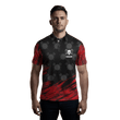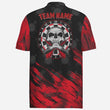 Personalisiertes Herren Polo-Shirt mit Totenkopf-Motiv und Darts, rot-schwarzes Dart-Trikot für Männer R76
