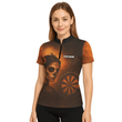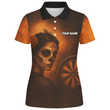 Damen Poloshirt Personalisiert Tag der Toten Zuckerschädel Darts Motiv Braun Orange K7534
