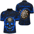 Personalisierte Herren Dartshirt mit blauem Feuerflammen-Schädel und Magma T2585