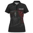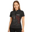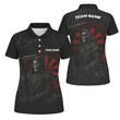 Personalisiertes Totenkopf-Dart-Poloshirt Schwarz-Rot gecrackt Damen X1942