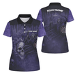 Personalisiertes Totenkopf-Dart-Poloshirt Lila-Schwarz für Damen C8621