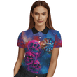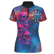 Personalisiertes Damen-Dart-Polo: Pinker Totenkopf, Team Blau, Grunge-Look X1960