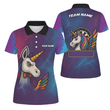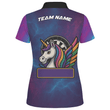 Personalisiertes Damen Dart Poloshirt Einhorn Regenbogen Blitz Lila Blau B1140