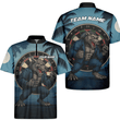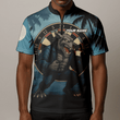 Personalisiertes Herren-Polo-Shirt "Tropennacht": Werwolf-Dart-Design in Blau O7902
