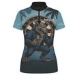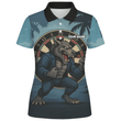 Personalisiertes Damen-Polo-Shirt "Tropennacht": Werwolf-Design in Blau O7902