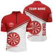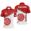 Rote Weiße Herren Darts Polo Shirt mit individuellem Namen | Personalisierte Darts Hemden für Männer | Dart Trikots R1711 red