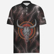 Rotes Darts Polo-Shirt für Herren, mit Blitz, Donner und Stierenschädel Motiv I15
