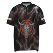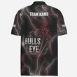 Rotes Polo-Shirt mit Blitz, Donner, Stierenschädel und Darts-Motiv, individuell anpassbares Darts-Trikot für Herren I15