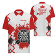 Rotes weißes personalisiertes Herren Darts Polo Shirt, individuell anpassbares Team Darts Trikot Shirt für Männer R489