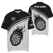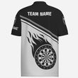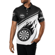 Schwarzes weißes Flammen-Darts-Herren-Polo-Shirt mit Namen, individuelles Darts-Shirt für Männer, Dart-Trikot d0971