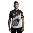 Schwarz-weißes Darts-Herren-Polo-Shirt mit Flammenmotiv, Dart-Trikot d0971