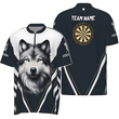 Marineblaues Dart-1/4 zip-Shirt mit Wolfsmotiv, individuell anpassbares Team-Trikot mit Dartboard, Herren Dartshirt vk822